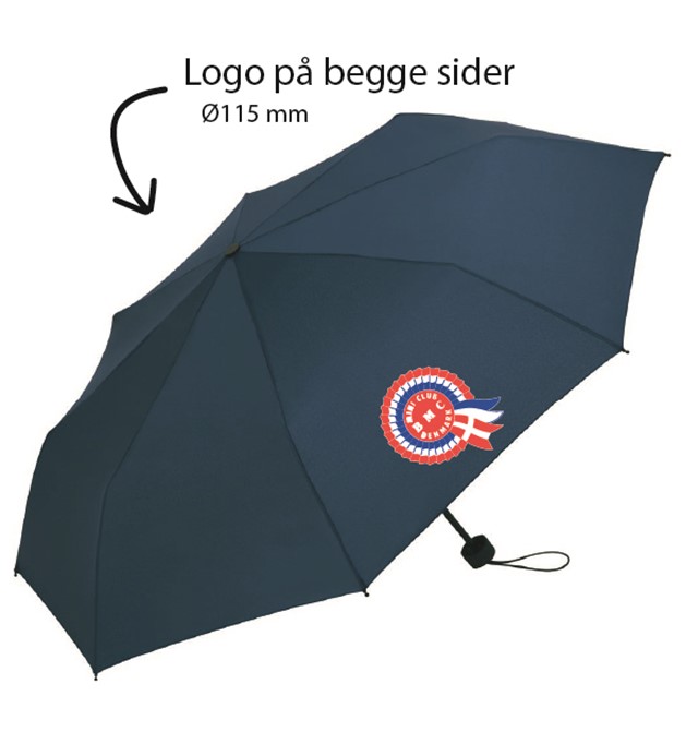 Manuel åbning, Stormsikker. Greb: Kunststof Skaft: Stål Ø 98 cm Længde 23 cm Felter 8 Vægt 290 g 3 delt skaft 100% Polyester- Pongee. Mini Club Logo på to paneler